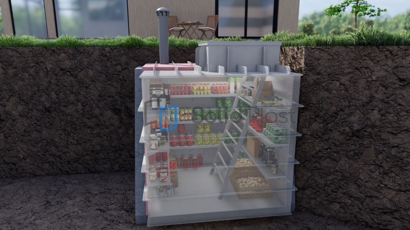 Rozměry plastového sklepa lze vyrobit individuálně na zakázku. Díky své pohodlné a praktické podobě může být sklep instalován pod domem, letní kuchyní, garáží nebo na otevřeném prostranství. Instalace a montáž nevyžadují delší dobu, na rozdíl od betonových nebo cihlových konstrukcí.