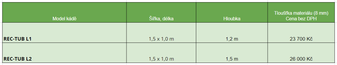 Fotografie obdelníkové kádě s výpustí model REC-TUB L2 pro zasazení do země / skladem za zvýhodněnou cenu 24 450,- Kč vč. DPH